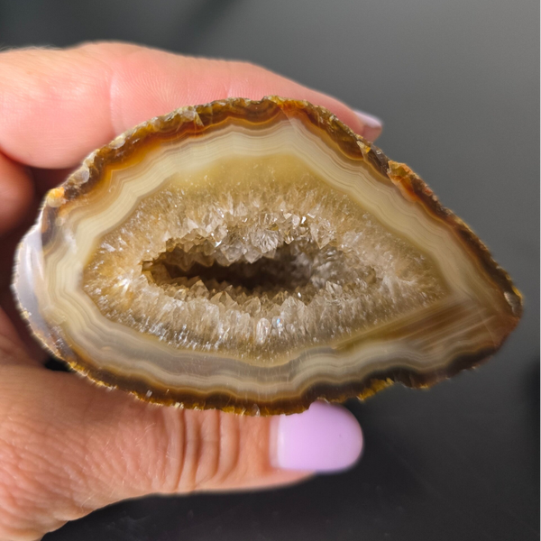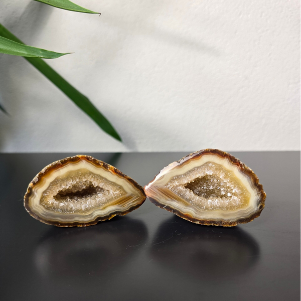 Een agaat geode paartje bevordert harmonie, verbondenheid en balans tussen twee personen, en versterkt relaties op energetisch niveau.