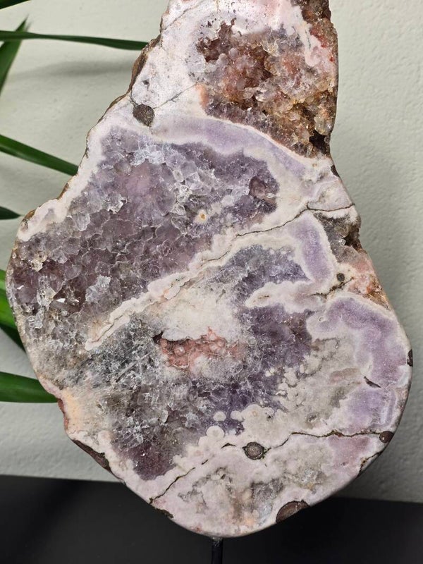 Roze amethist straalt een zachte, liefdevolle energie uit die het hart en de geest kalmeert en emotionele heling bevordert. Het helpt bij het loslaten van angsten en negatieve gedachten, en ondersteunt innerlijke vrede en zelfliefde.