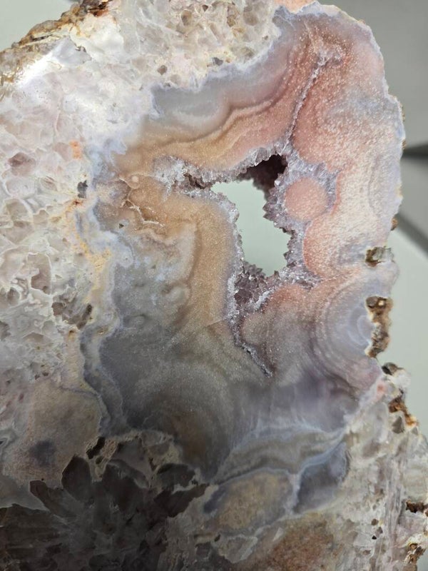 Roze amethist straalt een zachte, liefdevolle energie uit die het hart en de geest kalmeert en emotionele heling bevordert. Het helpt bij het loslaten van angsten en negatieve gedachten, en ondersteunt innerlijke vrede en zelfliefde.