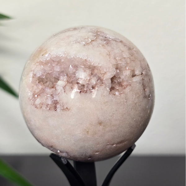 Een roze edelsteenbol straalt zachte, liefdevolle energie gelijkmatig in alle richtingen uit en bevordert harmonie, rust en emotionele heling. Ze ondersteunt het openen van het hart, zelfliefde en het aantrekken van liefdevolle relaties.