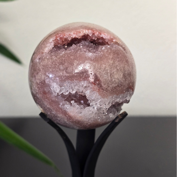 Een roze edelsteenbol straalt zachte, liefdevolle energie gelijkmatig in alle richtingen uit en bevordert harmonie, rust en emotionele heling. Ze ondersteunt het openen van het hart, zelfliefde en het aantrekken van liefdevolle relaties.