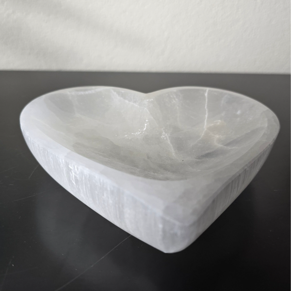 Een seleniet harten schaaltje straalt zuiverende en rustgevende energie uit en is ideaal om andere edelstenen energetisch te reinigen en op te laden. De hartvorm versterkt intenties van liefde, vrede en emotioneel evenwicht in de ruimte waarin het staat.