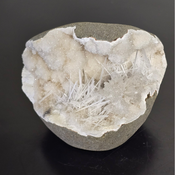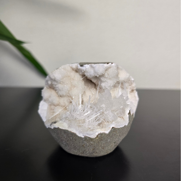 Scoleciet is een krachtige steen voor innerlijke rust en diepe meditatie, die helpt bij het openen van het derde oog en het versterken van spirituele verbindingen. Het bevordert lucid dreaming, intuïtie en een gevoel van eenheid met het universum.