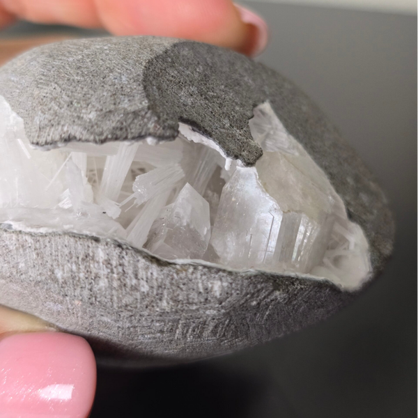 Scoleciet is een krachtige steen voor innerlijke rust en diepe meditatie, die helpt bij het openen van het derde oog en het versterken van spirituele verbindingen. Het bevordert lucid dreaming, intuïtie en een gevoel van eenheid met het universum.